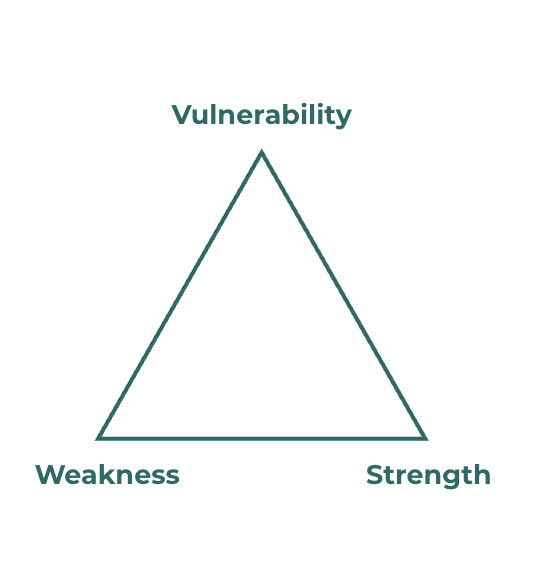 Q: Is vulnerability a strength or a weakness?A: It is neither. As described in the "Triangle of Vulnerability," it exists in its own unique category. It is simply the physical sensation of being open, authentic, and ready to share a part of yourself.